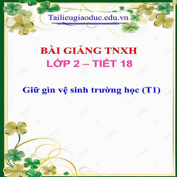 Bài giảng Giữ gìn vệ sinh trường học lớp 2 thuộc môn Tự nhiên và Xã hội, được xây dựng nhằm giúp học sinh nhận thức được tầm quan trọng của việc giữ gìn vệ sinh môi trường học đường. Nội dung bài học hướng đến việc hình thành cho học sinh thói quen sống sạch sẽ, gọn gàng và có ý thức trách nhiệm với không gian chung.